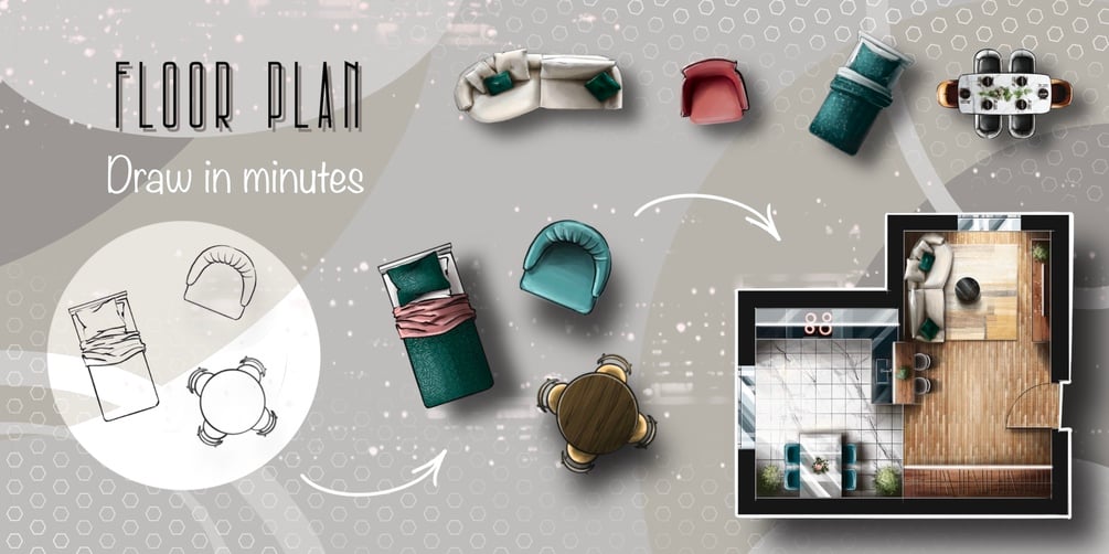 Create a new project in Procreate or Infinity Painter, insert a PNG file with furniture elements. Then select the necessary ones and place them on the plan. Done!