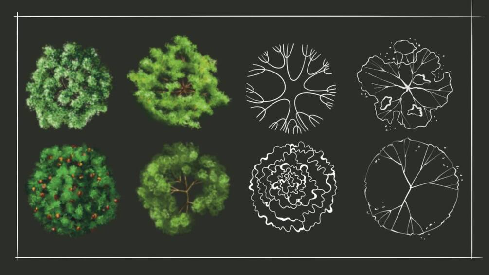 Landscape set : 4 stamps + 4 tree elements will help you to quickly draw landscape sketches, master plans.